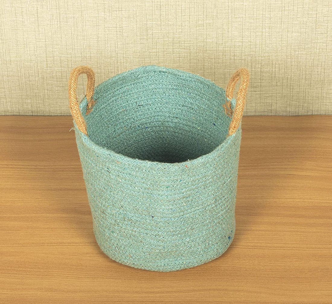 TIB The Intellect Bazaar jute Planter Pots/Handcrafted Storage Basket with handle, Multi-Purpose use for Bathroom Living Room (8x8 Inches)Blue
