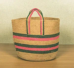 TIB The Intellect Bazaar jute Planter Pots/Handcrafted Storage Basket with handle, Multi-Purpose use for Living Room (12x12 Inches)Pink Multi