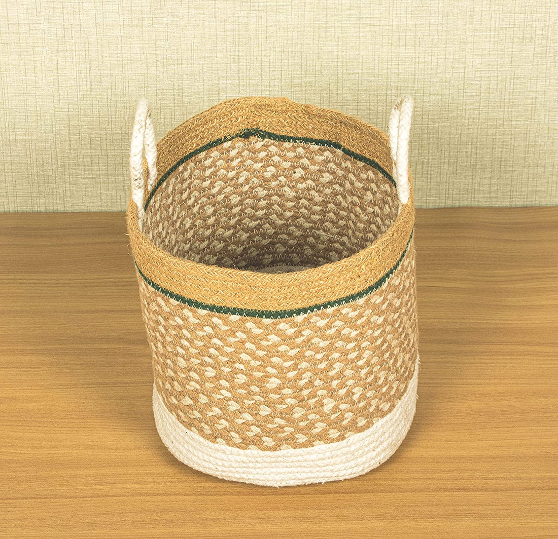 TIB The Intellect Bazaar jute Planter Pots/Handcrafted Storage Basket with handle, Multi-Purpose use for Living Room (12x12 Inches)White Beige