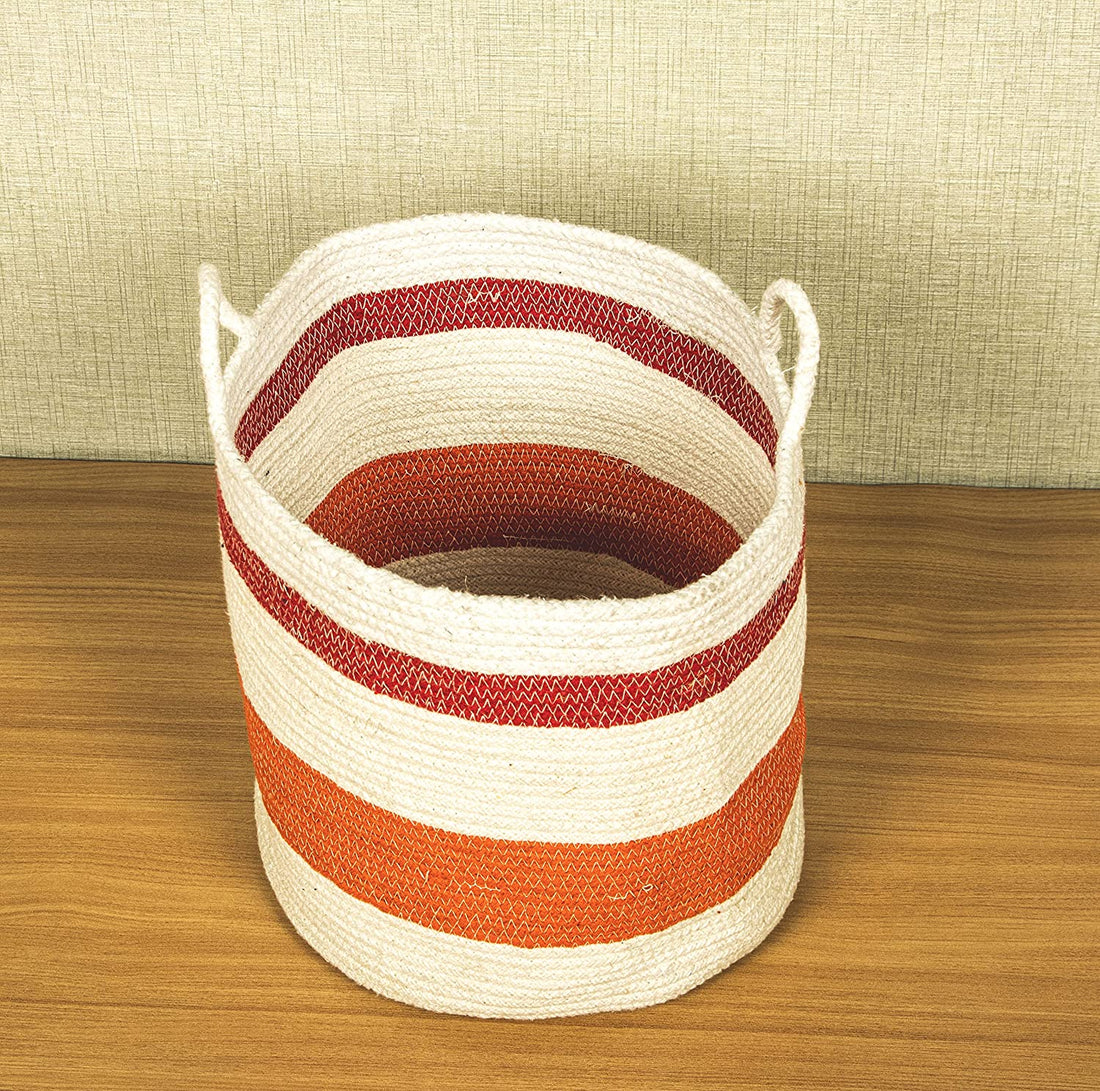 TIB The Intellect Bazaar jute Planter Pots/Handcrafted Storage Basket with handle, Multi-Purpose use for Living Room (12x12 Inches)Beige Red