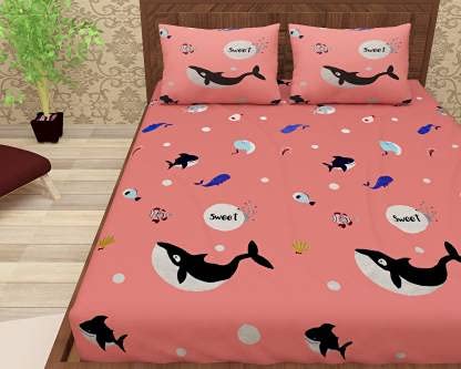 TIB 130 GSM Polycotton Kids Galaxy Pattern Bedsheet for Double Bed with 2 Pillow Covers,90x100 Inch, Peach