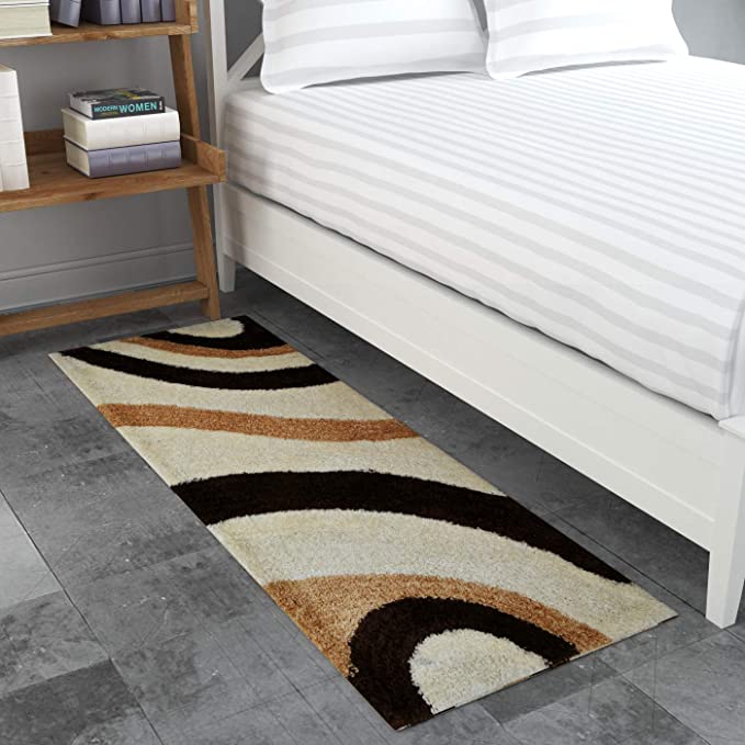 TIB® The Intellect Bazaar Shaggy Bedside Runner Home Floor Décor Rugs - Living, Dinning, Office, Rooms & Bedroom, Hallway Carpet (Cream Coffee)