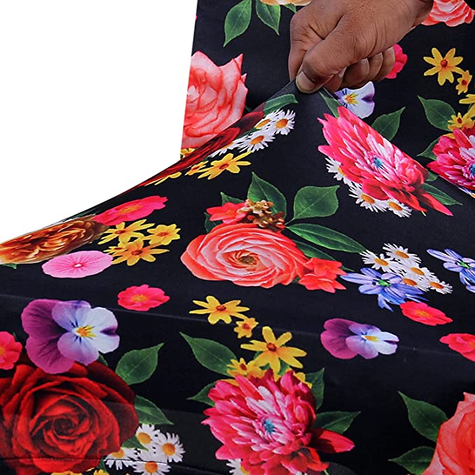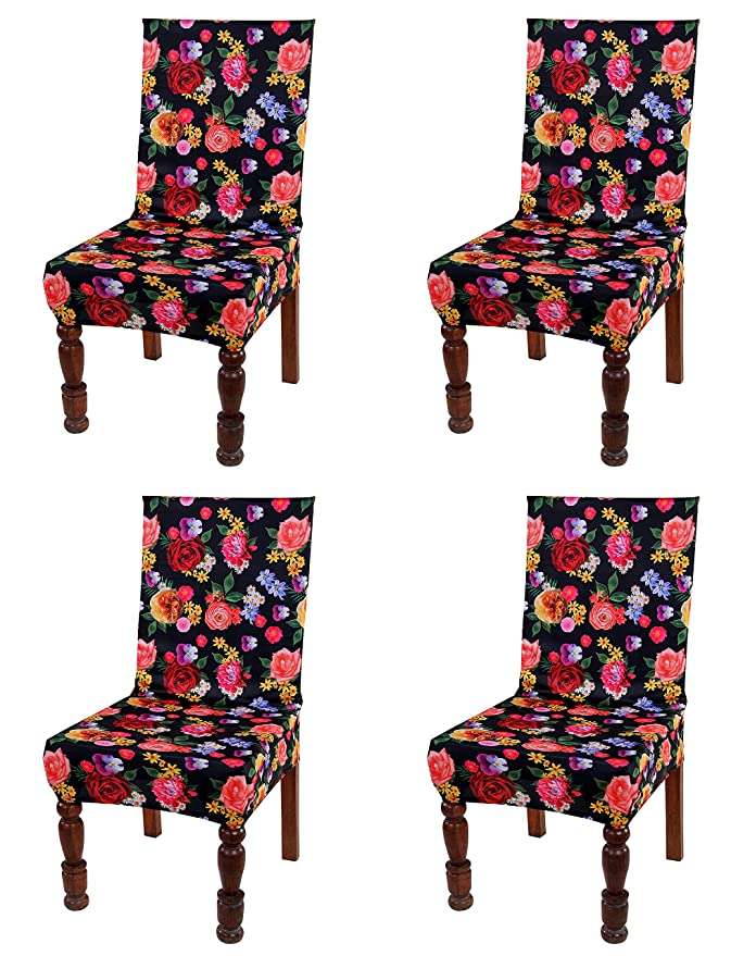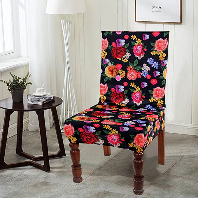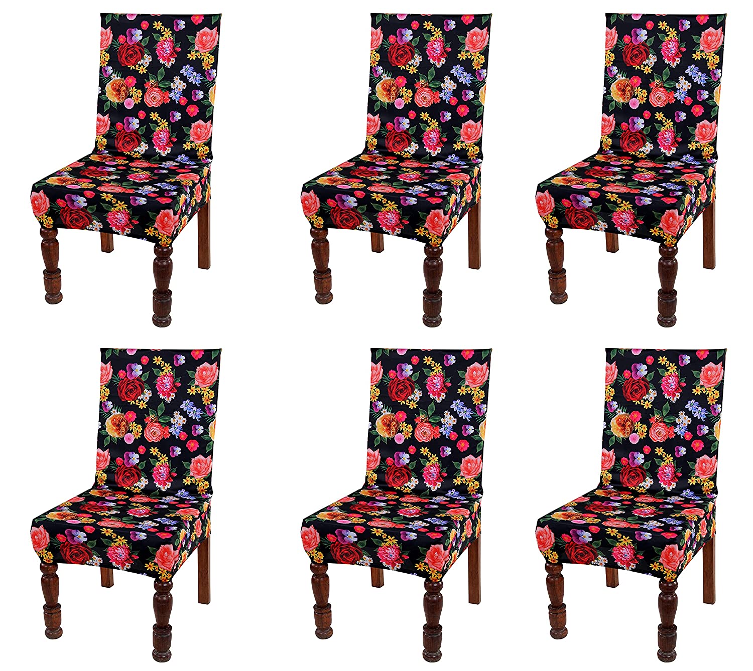 TIB The Intellect Bazaar Polyester Flowered Elastic Stretch Removable Washable Dining Chair Cover Set of 6 Seat Protector Slipcover (Multi) -6 Pieces