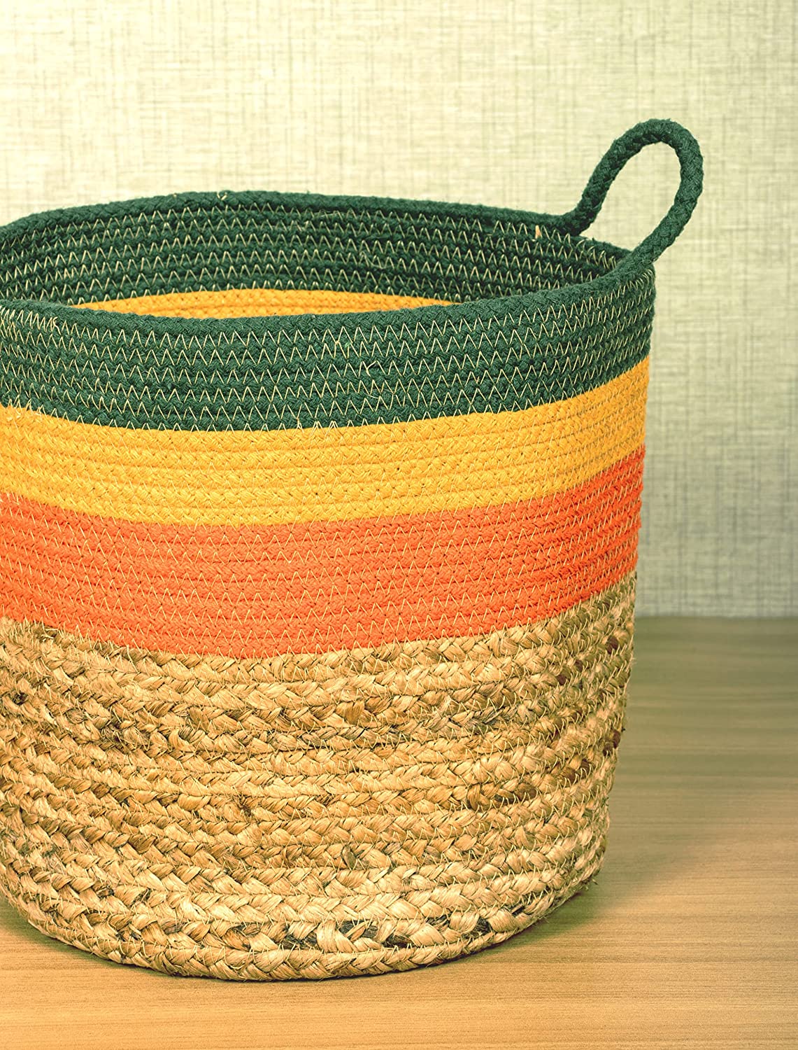 TIB The Intellect Bazaar jute Planter Pots/Handcrafted Storage Basket with handle, Multi-Purpose use for Living Room (12x12 Inches)Multi-color