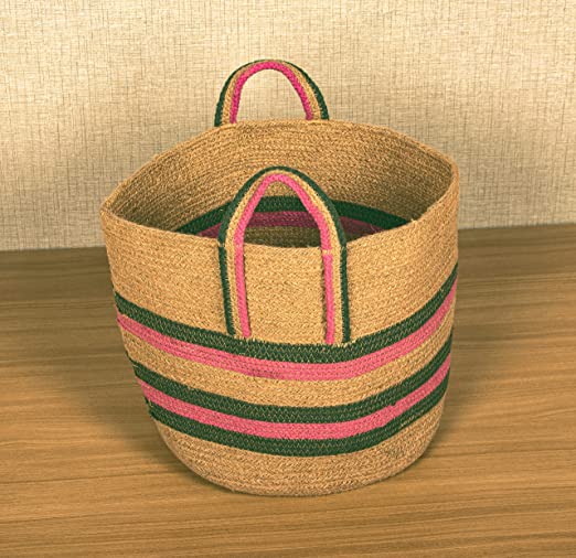 TIB The Intellect Bazaar jute Planter Pots/Handcrafted Storage Basket with handle, Multi-Purpose use for Living Room (8x8 Inches) Beige Red