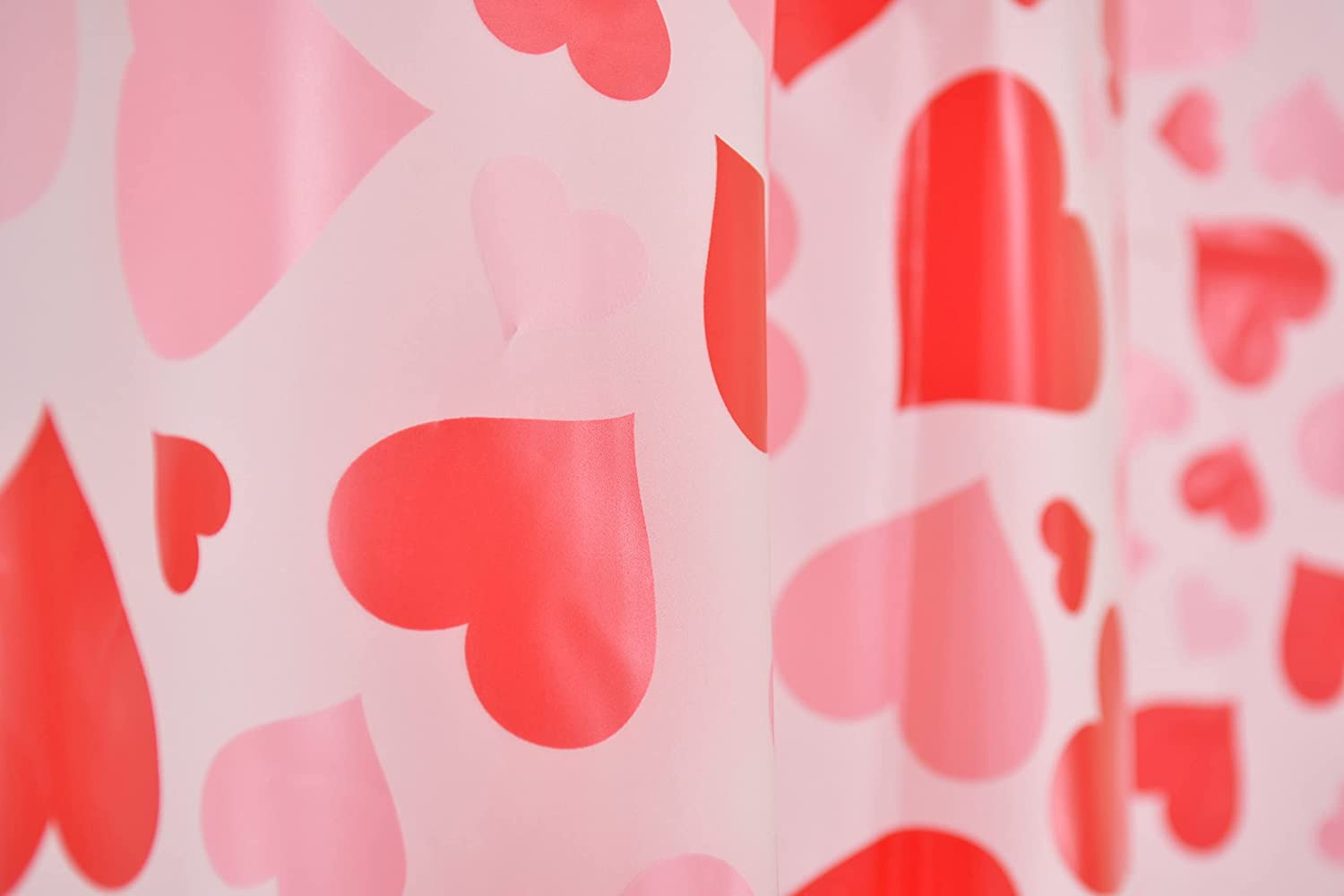 TIB® Water Repellant Heart Design Shower Curtain with Hooks - 72" x 72, Shower Curtain 6 feet for Bathroom Thin Curtains