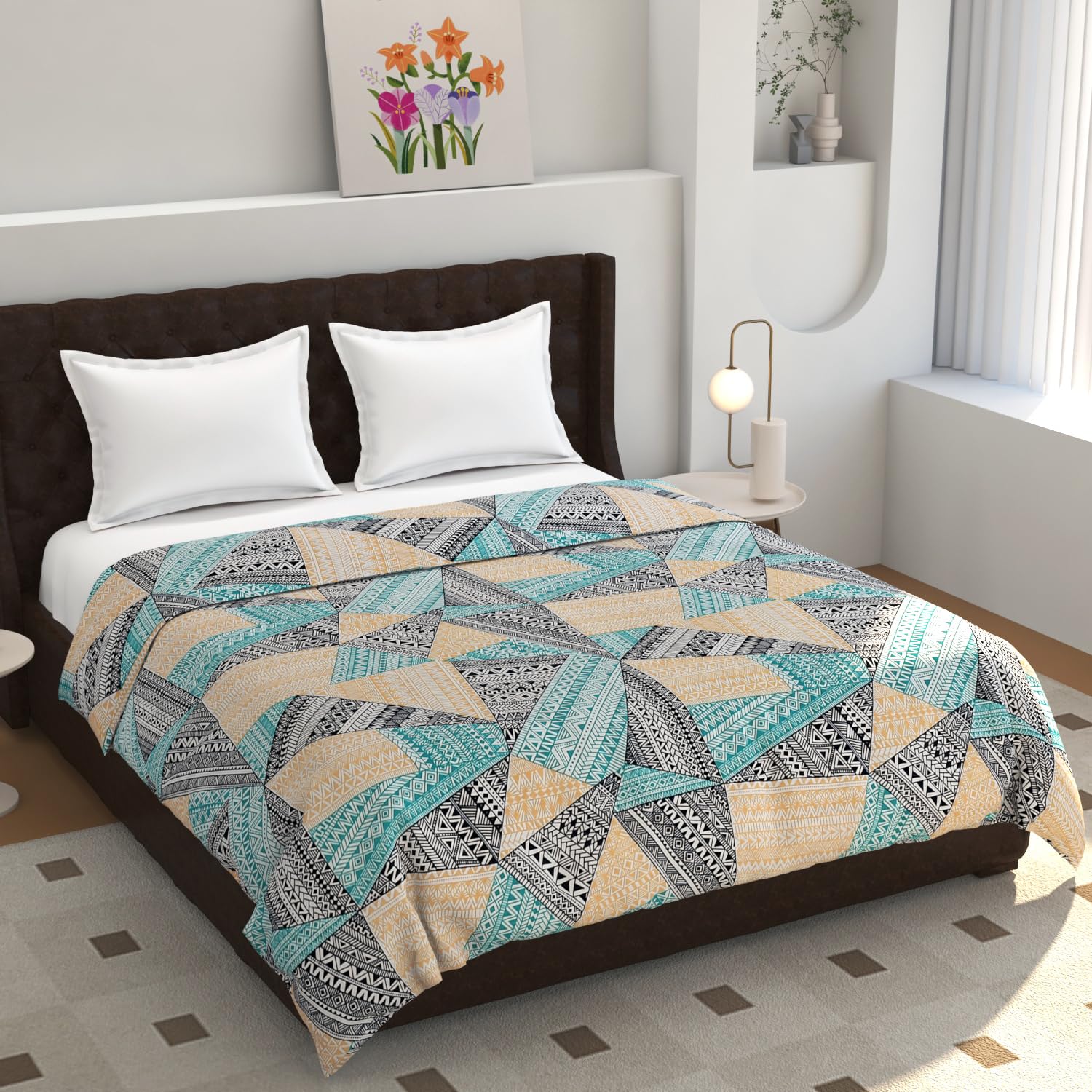 TIB® 140 GSM Soft Glace Cotton Duvet Cover Double Bed II Razai Cover II Quilt Cover II Dohar Cover for Double Bed with Zipper. (Multi Triangle, Double)
