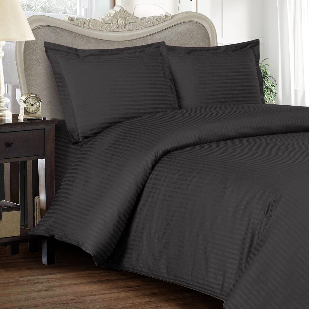 TIB Glace Cotton Satin Stripes Duvet Cover, Razai Cover- Grey